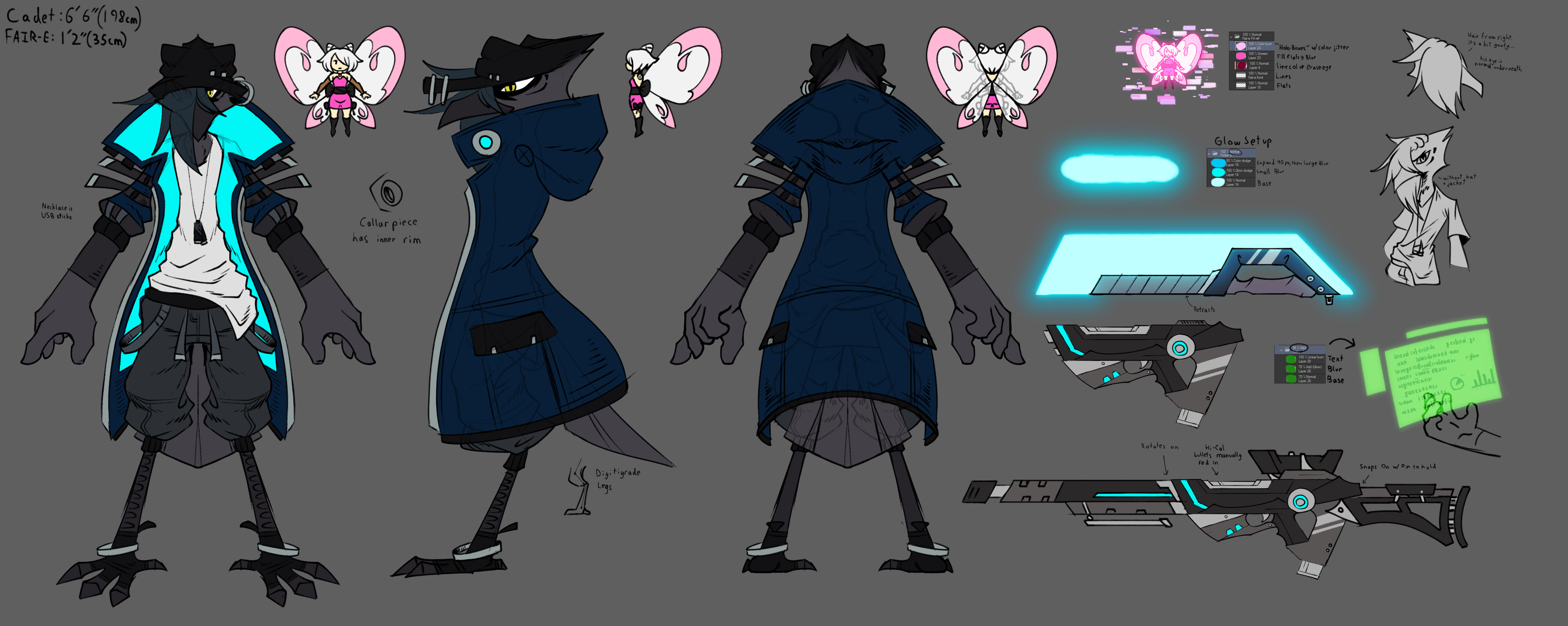 Cadet actually one of my oldest OCs that I'm only recently getting to flesh out. Below I'll add in any extra design note images as I make them for people or I feel necessary. (As of the audition there is none)
